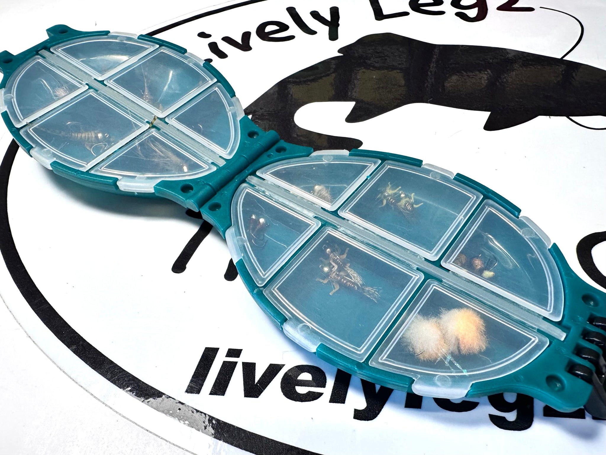 Lively Legz Barbless/ Tungsten “Wild Brown Trout” Turtle Pocket Fly Box (24 Barbless Flies)