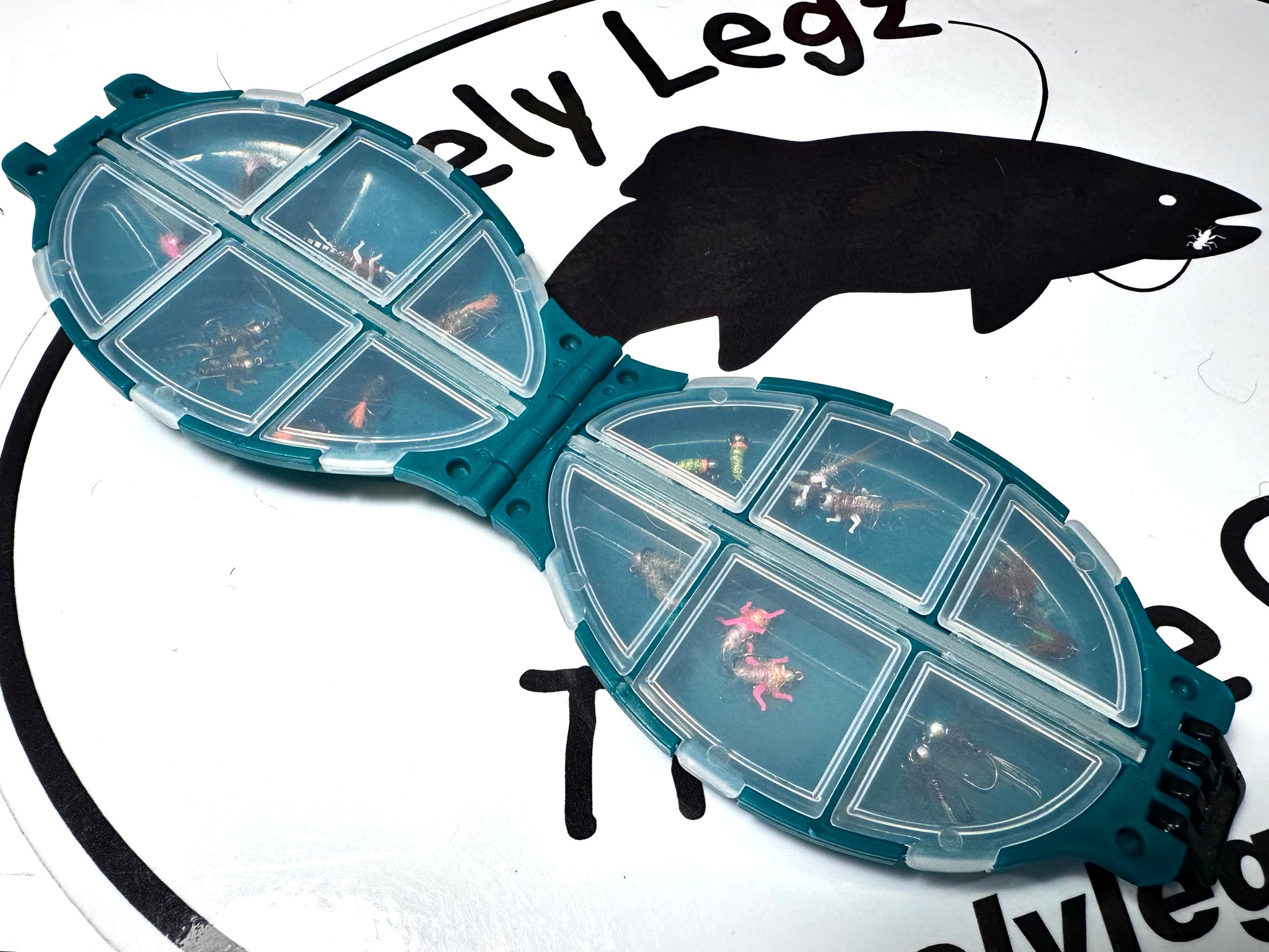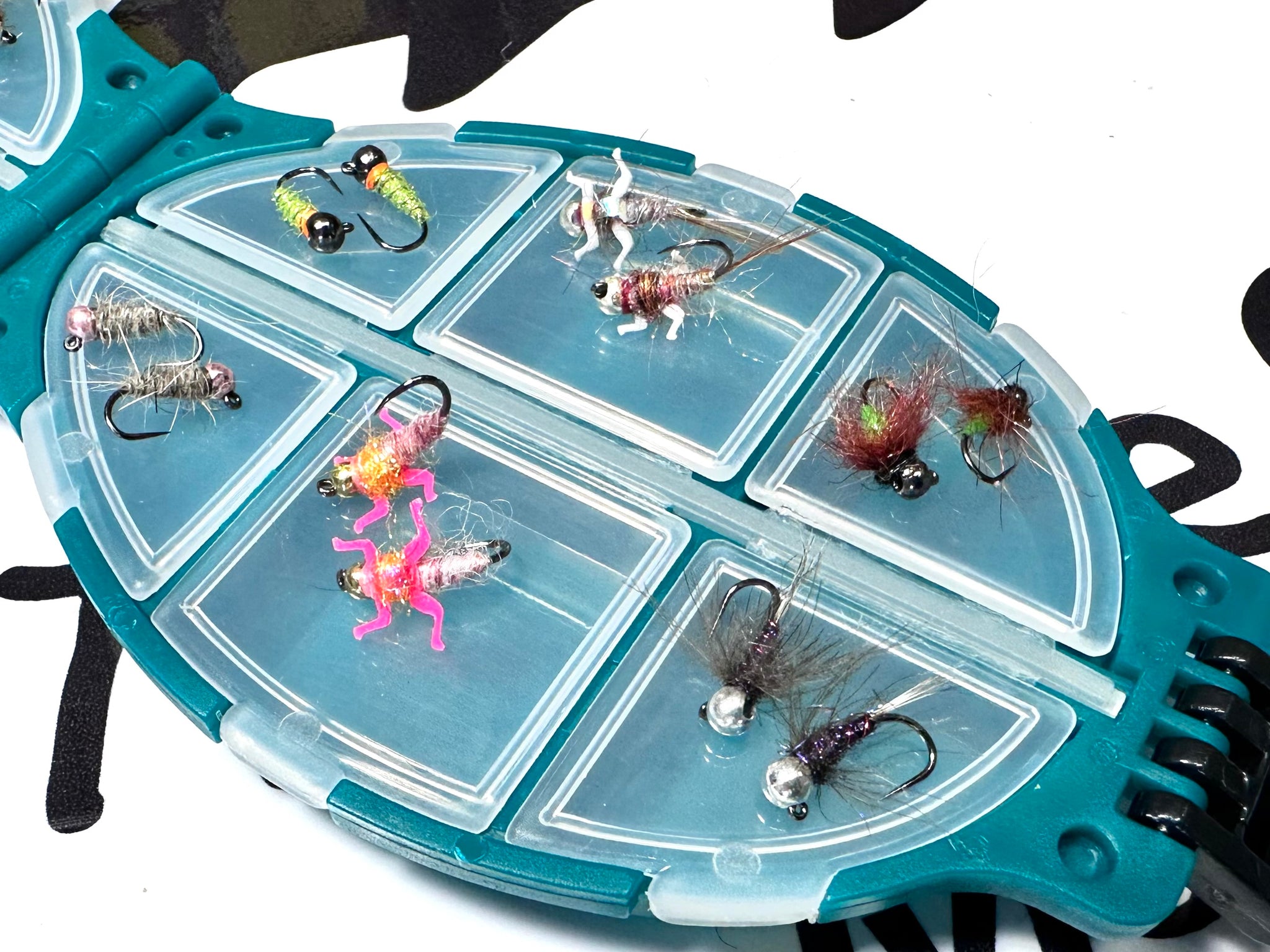 Our Barbless/ Tungsten "Native Brook Trout" Turtle Pocket Box is loaded with 24 of some of our favorite native brookie flies on our Lively Legz Lip Splitter Barbless Hooks with our Down & Dirty Tungsten Beads. This combo creates a premium heavy tungsten bead head nymph that will get down to the fish fast, along with barbless deep hook setting power.