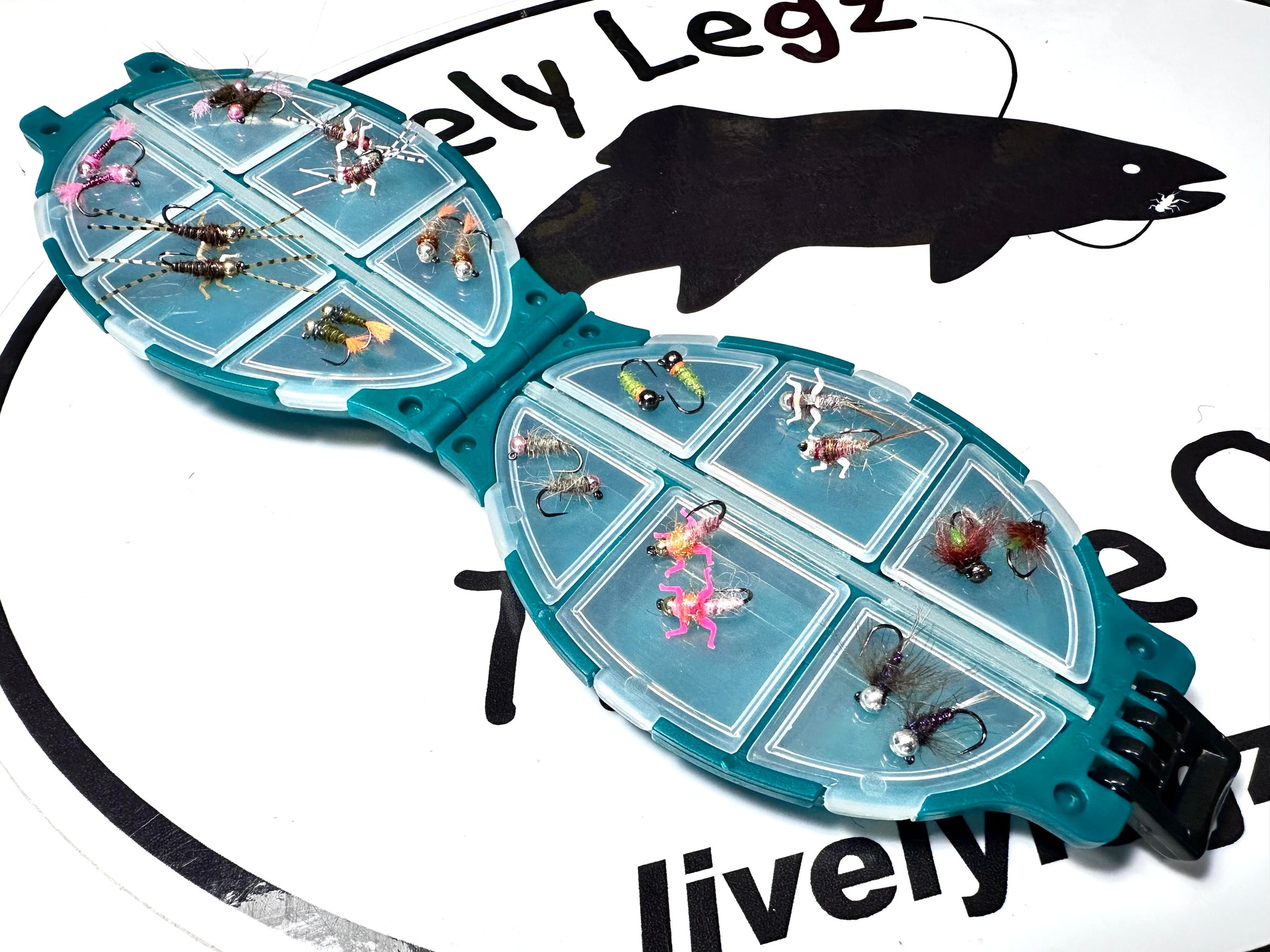 Lively Legz Barbless/ Tungsten “Native Brook Trout” Turtle Pocket Fly Box (24 Barbless Flies)