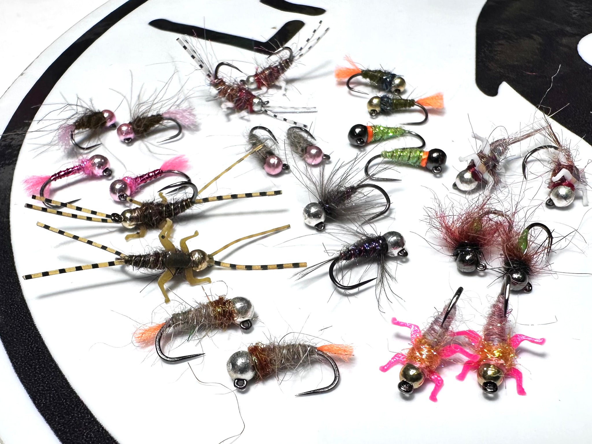 This Box features our Barbless/ Tungsten Flies in sizes 12, 14, and 16.